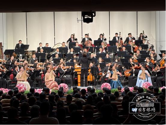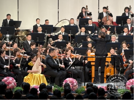 音乐会以经典管弦乐作品《红旗颂》开场,奏响中华民族的奋斗赞歌;经典曲目《茉莉花》通过灵动拨弦,将民歌的清雅韵味展现得淋漓尽致;《送我一枝玫瑰花》融入新疆民间节奏,轮指与扫弦间尽显少数民族的热闹风情;《云想·花想》则以清澈音色勾勒出大唐盛世的浪漫图景,让观众恍若穿越千年。