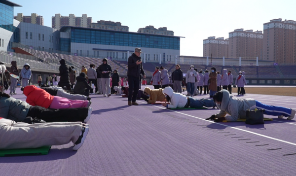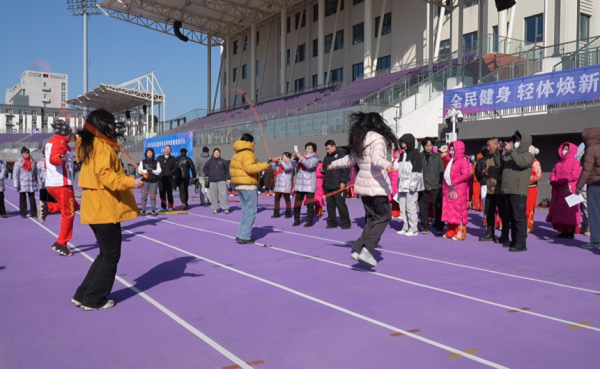 体育场两侧,老年体育协会带来精彩的全民健身展示,整齐舒展的动作、昂扬饱满的精神面貌,展现出辽源市民乐享运动、健康向上的良好风貌。